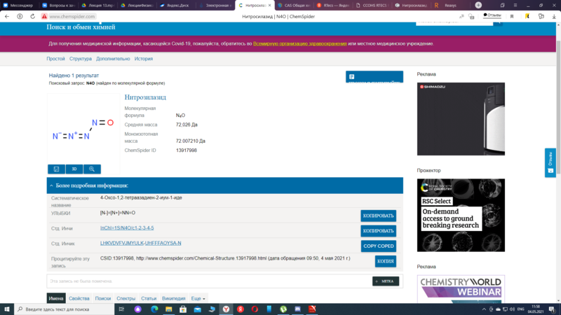 Файл:Поиск нитрозилазида в chemspider.png